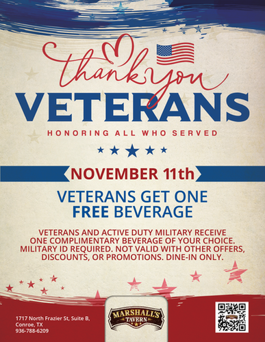 Marshall’s Tavern offers great drinks in a friendly atmosphere right in Conroe, Texas! Enjoy live music and more, exclusively for guests aged 21 and up.